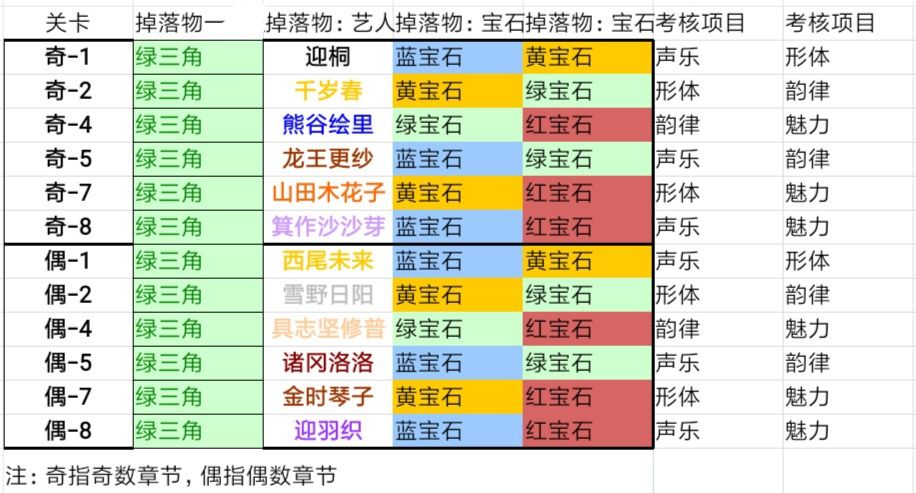 经过多次分析,最终发现,每个章节的掉落物都有所相似,故总结一图以概之。