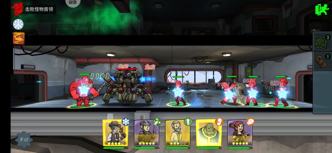 打断右侧BOSS时,尽量用凯特对其打断(该BOSS为能量免疫、大招为能量反伤,如果其释放出大招后,由尼克进行打断,反弹约3W+血量)。
