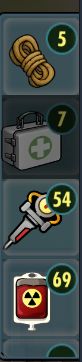 道具部分一定要有绳子,没有绳子你就会哭死的,去市场买哦!还有就是复活箱子,以及治疗针和抗辐射,有这些就够了