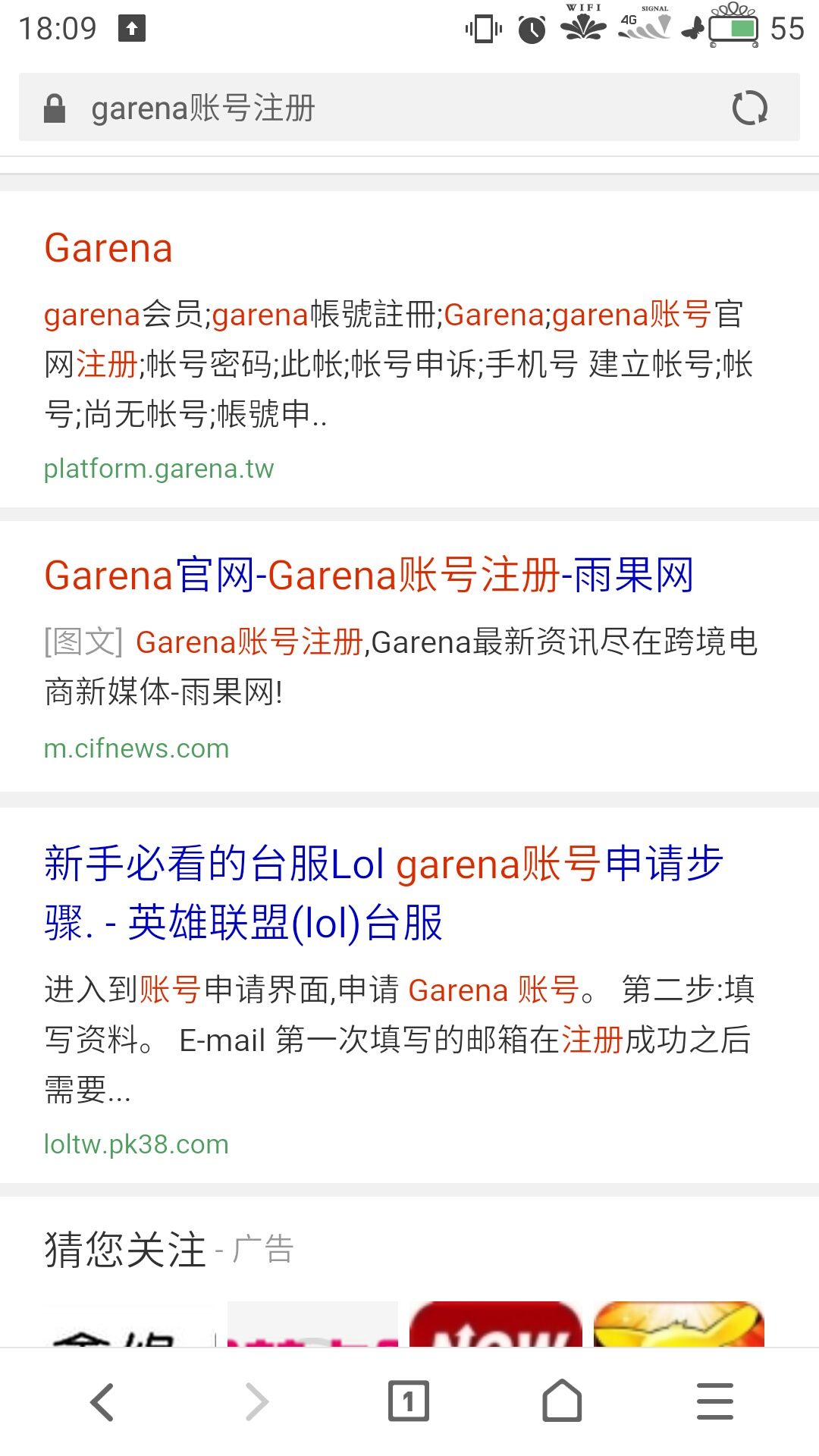 首先在浏览器搜索garena账号注册