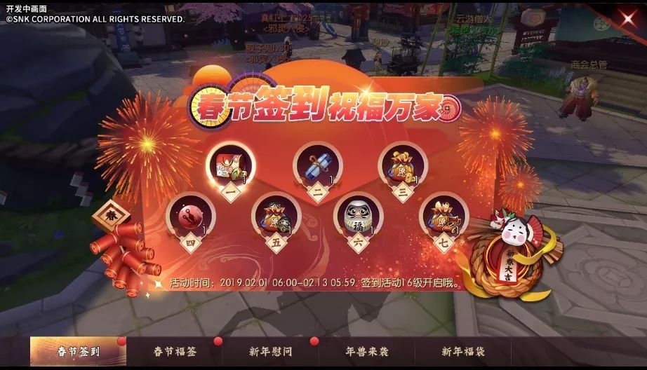 内含鞭炮、金判、概率获得春节限量配饰等奖励。