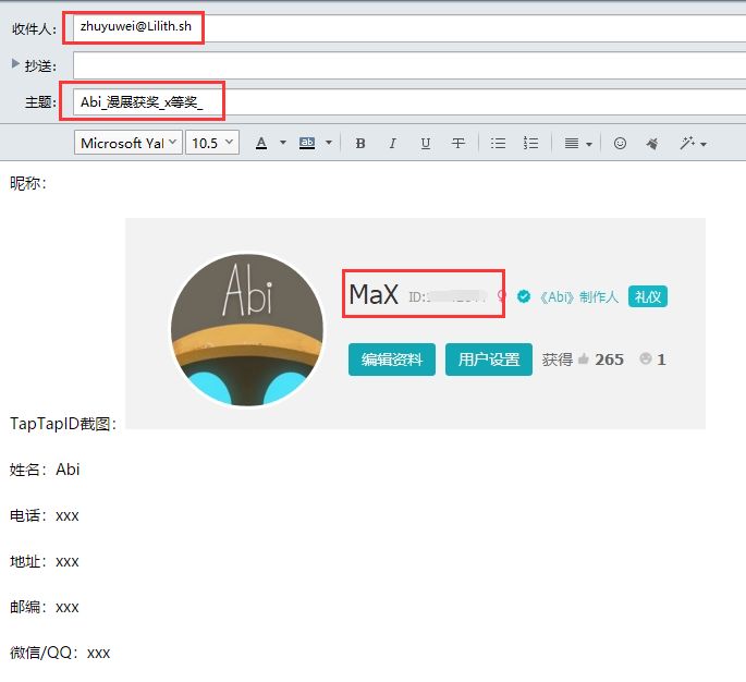 ③姓名、电话、微信或QQ、地址及邮编,以便我们给您门票以及寄送礼品 (邮件模板如下)