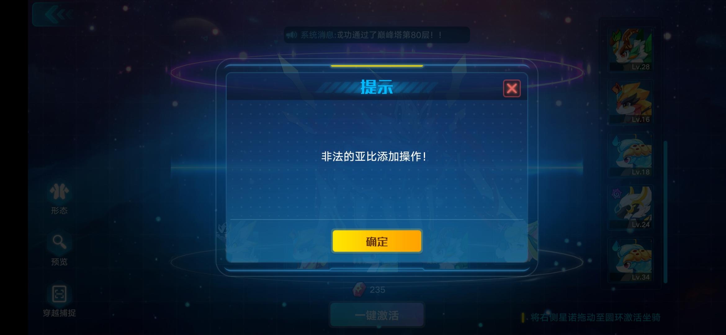 所以说官方不应该提示什么"非法操作",啥叫"非法"嘛,官方明显坑人或者程序员弄错了,应该正正经经的提醒一下咱们 至少背包里有两只相同的亚比方可添加 !