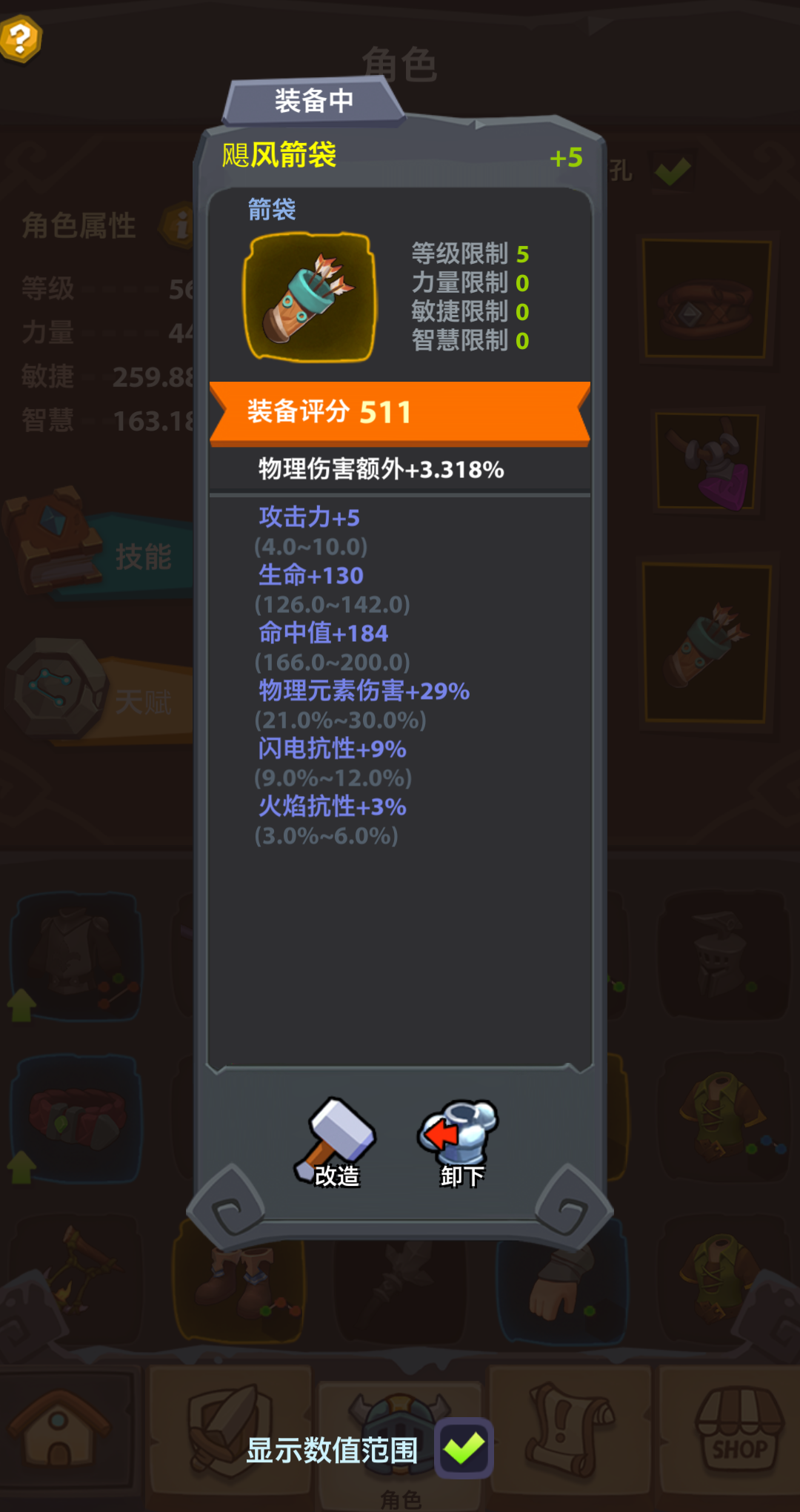 说完天赋说装备,请无视装备评分,这测你找装备思路就一个:简单粗暴——无脑找增加物理元素(武技元素)伤害词缀高的就OK。