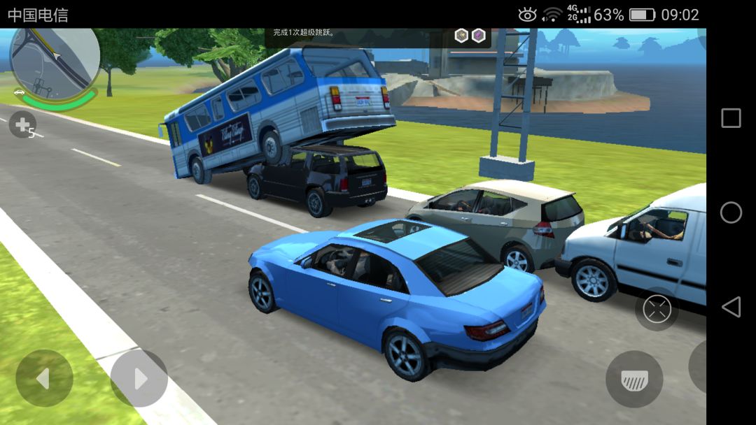但不过bug还是有的,比如开车开着开着 突然路中间刷出一辆车来,让你手无足措。或者就如下面,遭殃的不止你一个人。因为手机不行,所以还会存在卡的问题。