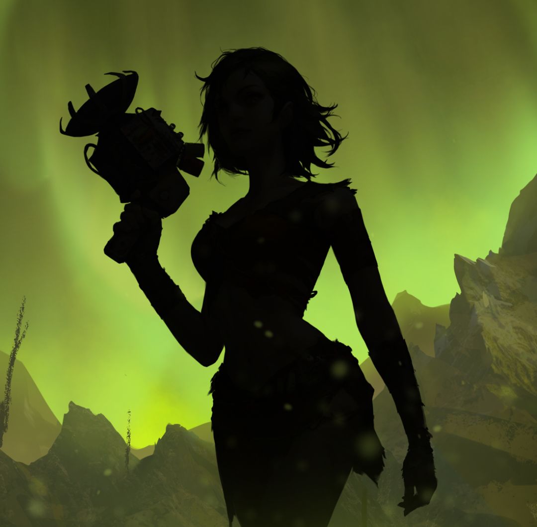 荒芜的岩山,枯萎的枝桠,还有被绿色荧光照亮的天空——