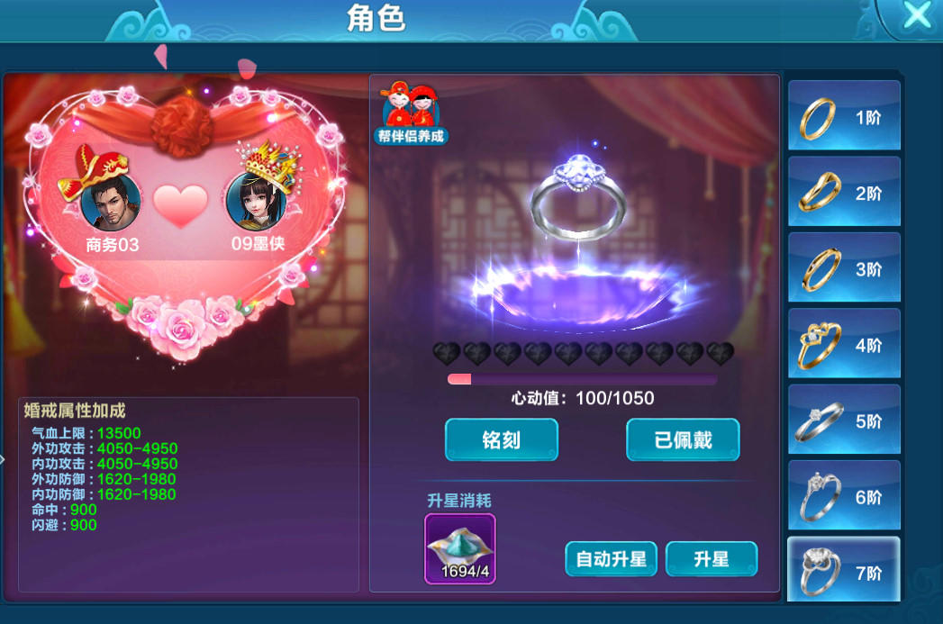 《锦衣寒刀》的结婚系统,也是可以提供属性的,少侠找寻到心爱的伴侣后,可领取两枚戒指前往月老处结成夫妻,婚后双方可佩戴结婚戒指,结婚戒指如同装备一样,提供高额属性,还可以通过琉璃砂和金刚砂升阶,进行进一步强化。