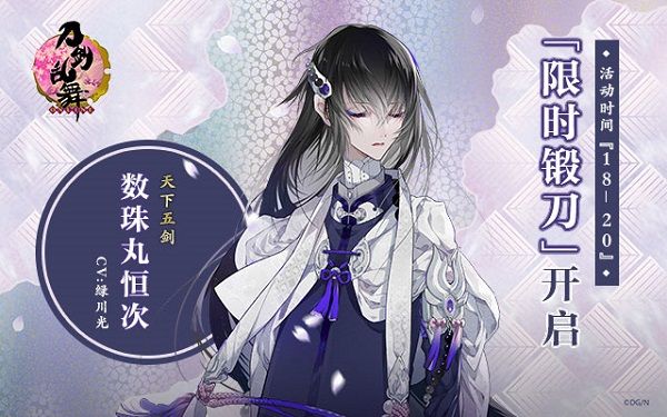 活动期间,审神者有机会通过锻刀功能锻出【太刀·数珠丸恒次】。
