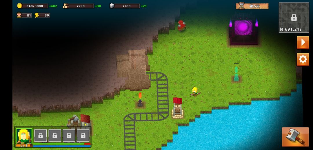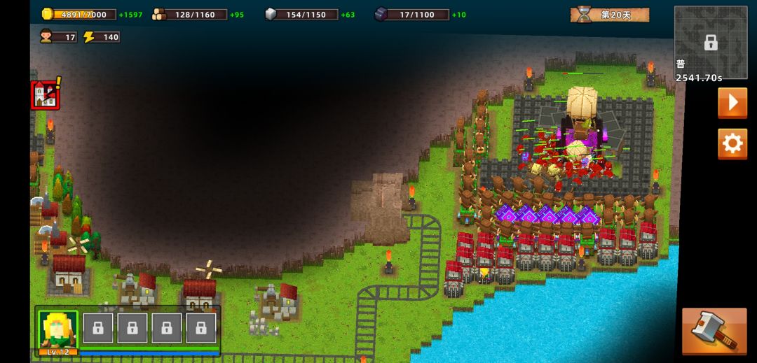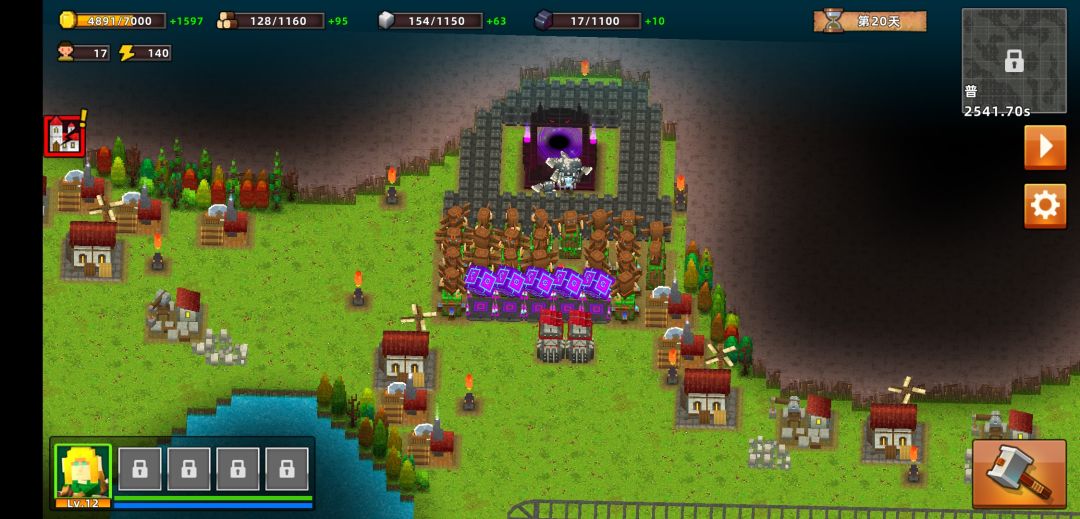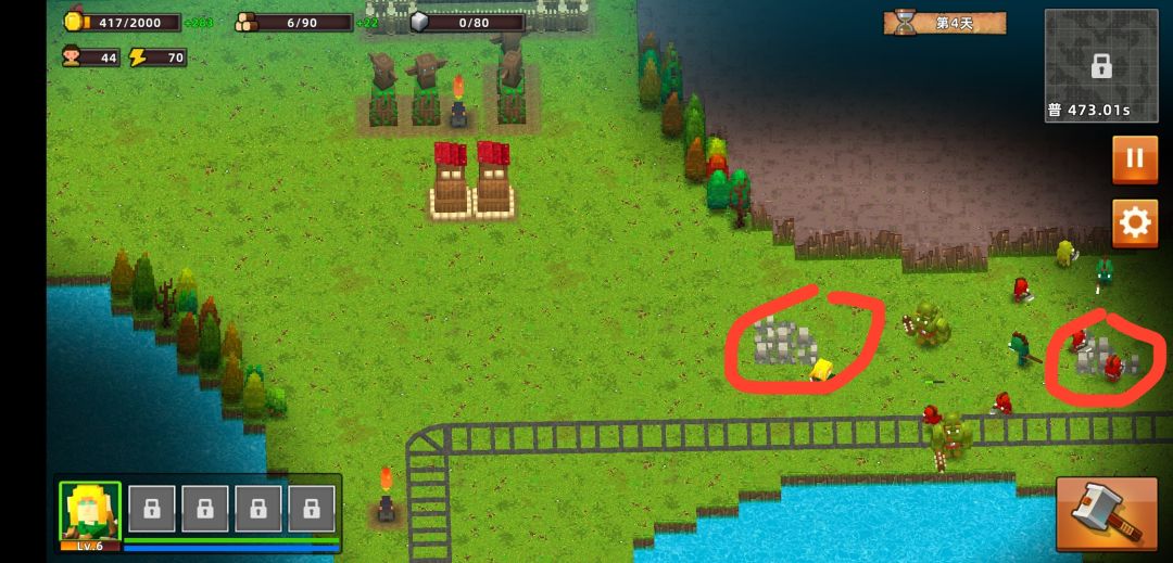 堵门,第6天要结束了,门也堵好了,这个地方会漏一两个哥布林,加点墙
