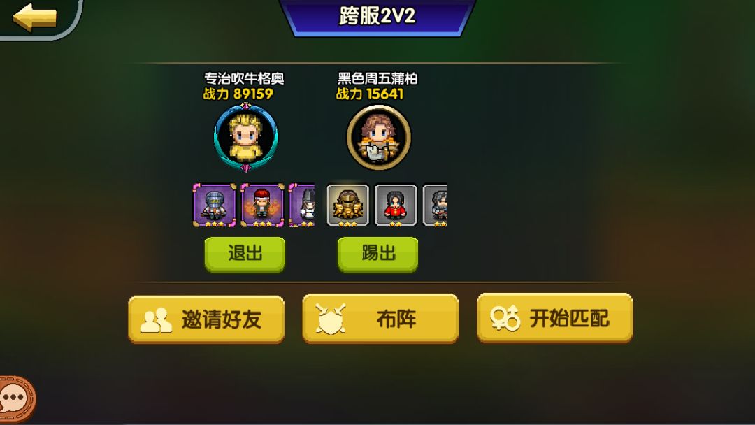 跨服战开启2V2模式,团长可邀请好友进行跨服战,2人可自由选择勇者搭配布阵。首次2v2跨服战将于本周日在部分指定区服间进行。