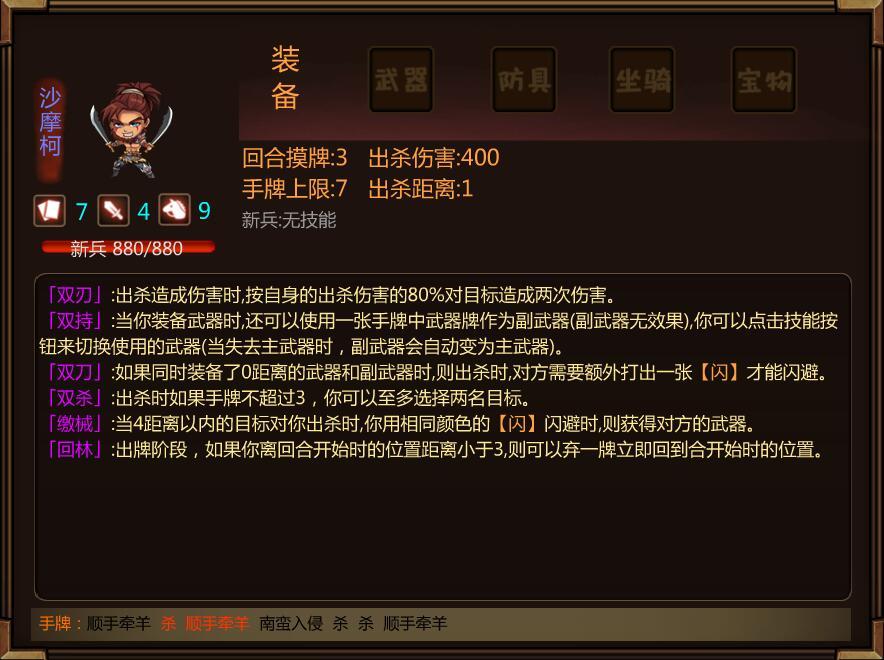 欢迎各位玩家来参与闯关杀武将“沙摩柯”的讨论,你的发言可能帮助其他玩家更好的使用该武将,也能帮助开发者优化武将。