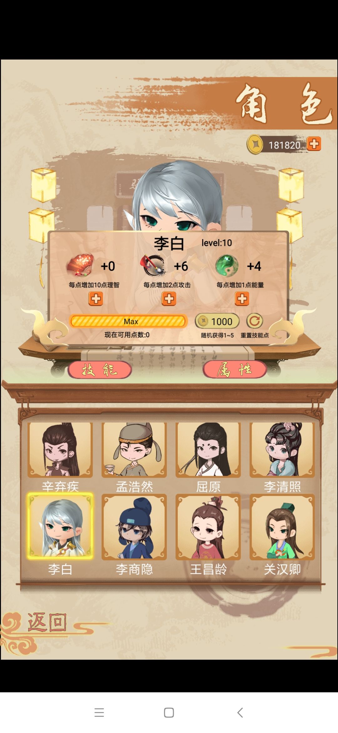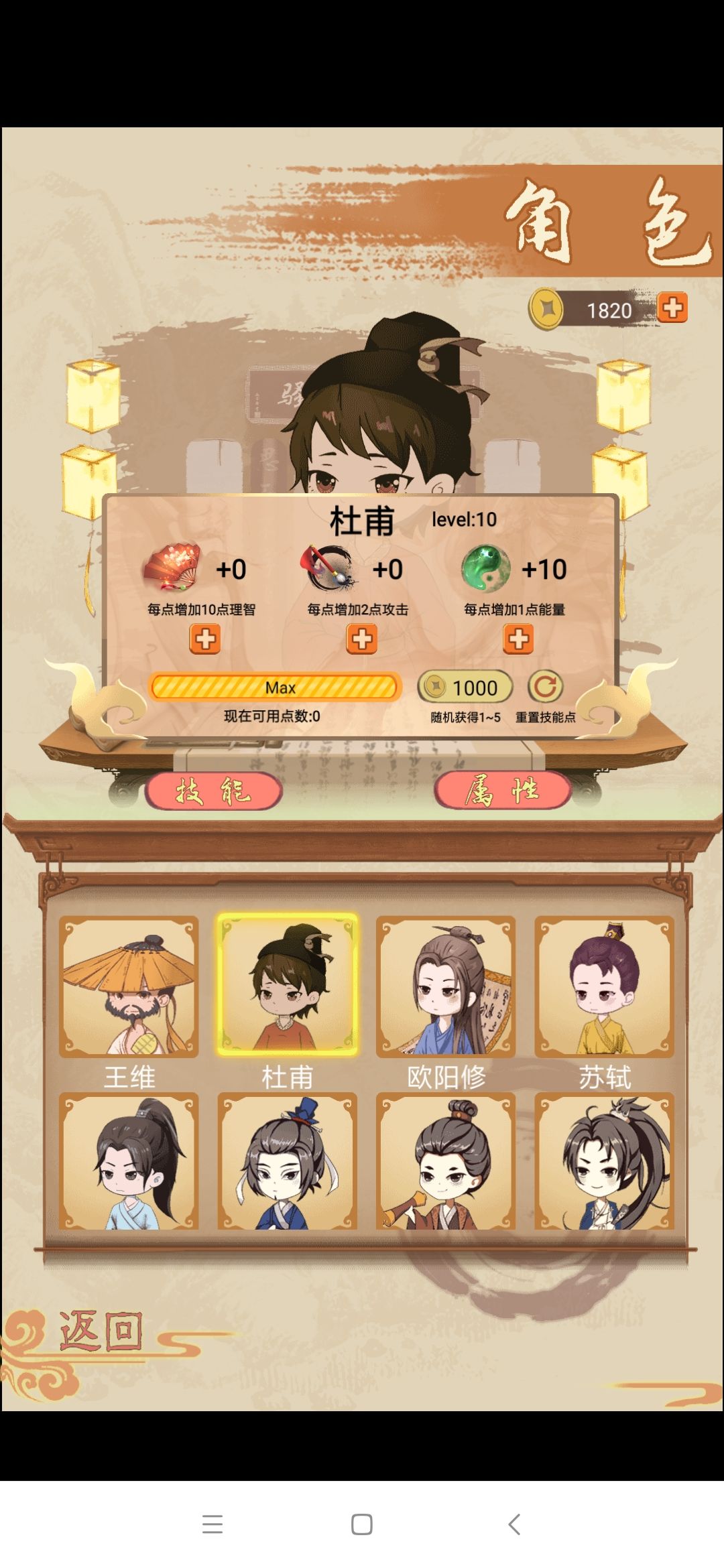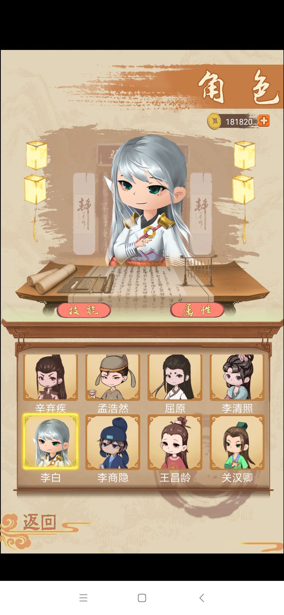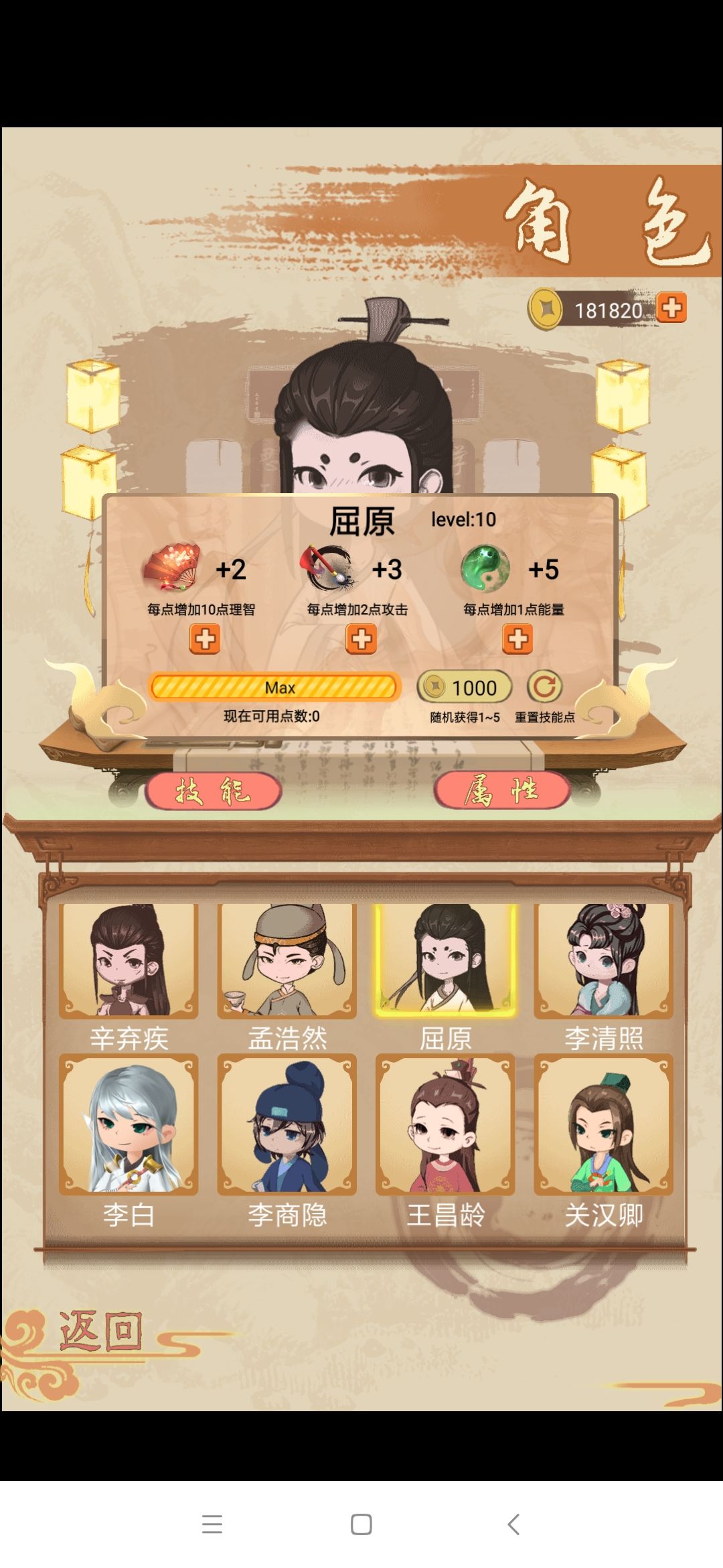关于阵容的选择上面看大家的喜好,喜欢玩控制的可以首选唐宋八大家,攻击的选李白,王维,屈原,李清照。单人最强的目前还是屈原,李白,杜甫(杜甫防御最强)。防御阵容可以玩杜甫,辛弃疾,王安石。