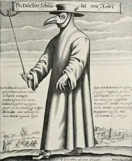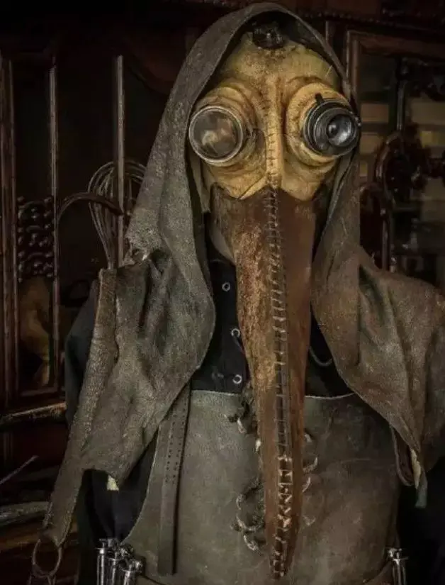 黑死病的时候人们医学科学不发达,认为带这种面具就可以防毒,呵呵,然后戴着这种面具去给黑死病人做放血手术(神tm放血手术)然后病人死了,自己也死了,后来这种面具就渐渐成为了死亡和恐怖的一种象征之一