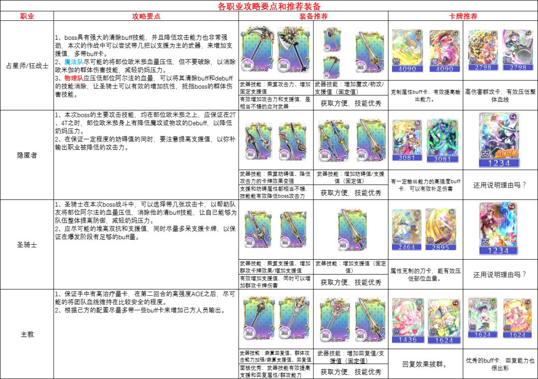 同时boss的降低攻击技能为群体降低,所以对输出职业的要求会更高,输出职业的攻击应当达到10500左右,尽量多带一些buff卡,以防止后面需要爆发的时候,攻击提不上去。