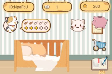 咳咳,废话不多说,先来正题。先说下主界面,最上是你的游戏内ID,你拥有猫咪的个数,还有金币数。如果你选中小猫咪,会提示猫咪的饥饿程度和干净程度,小鱼干越多代表猫咪越饱,星星越多则代表猫咪很干净。