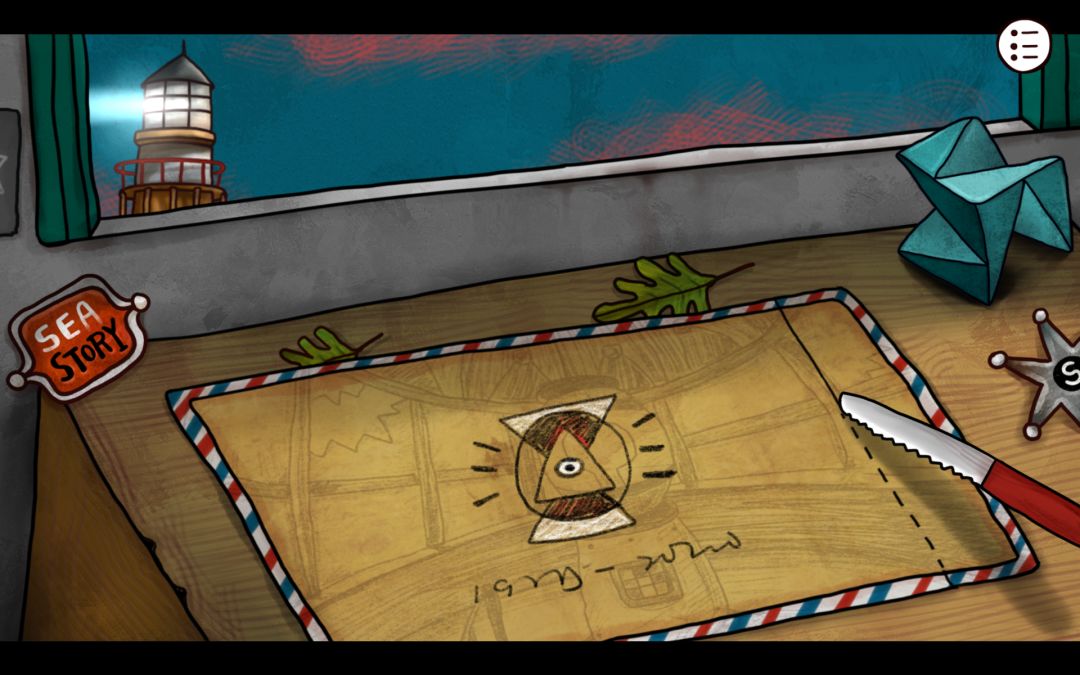 点击拾起小刀切割信封,露出里面的明信片,点击明信片开始游戏