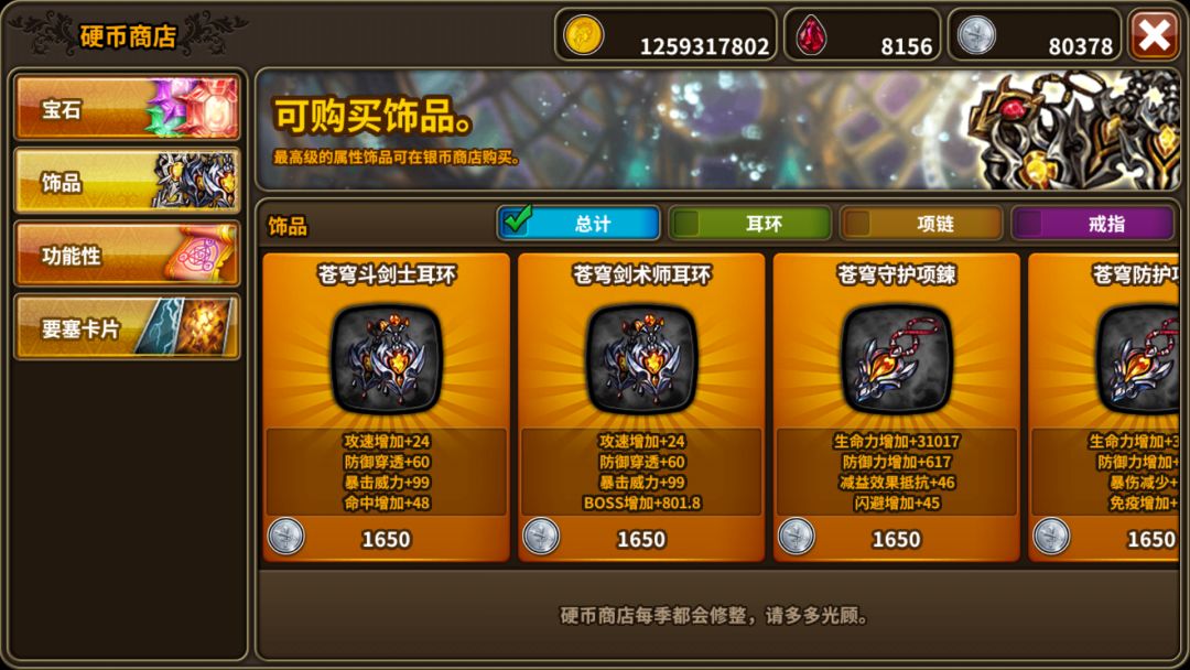 全新竞技场首饰登场,可通过竞技场星币兑换。