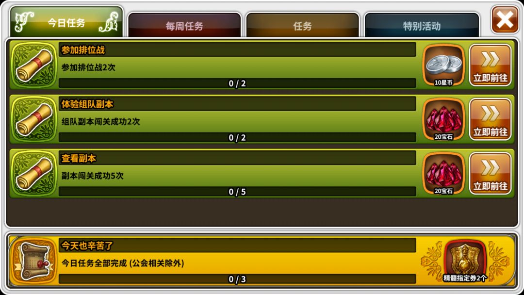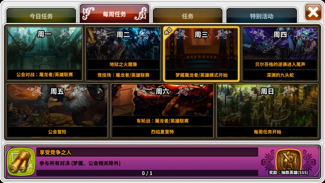 增加丰富每日及每周任务,提高玩家活跃度及粘性。