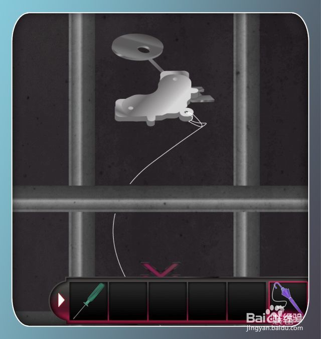 这时会自动合成装置,用这个钓竿一样的装置拾取铁栅栏外的钥匙并用钥匙打开门逃出。