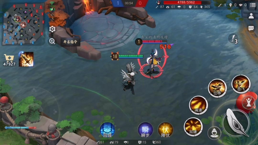 打达摩时继续观察中路动向,补兵或走到草丛隔墙位骚扰打达摩,就直接三技能飞脸收头。