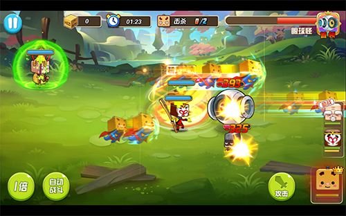 《我叫张小盒》并不是我们严格意义上的那种卡牌手游。在游戏中你可以控制角色走位和释放技能,从这一点上来说相较于同类型卡牌手游,《我叫张小盒》至少在战斗角度就已经做出了差异化。游戏采用横版战场的方式来定义战斗,乍一看有点像小时玩的街机游戏,通过手指点击地图进行走位,当储存了足够的能量便可以释放技能,不过为了避免给玩家增加太多的操作量,游戏规定只能够操控队长来进行战斗。