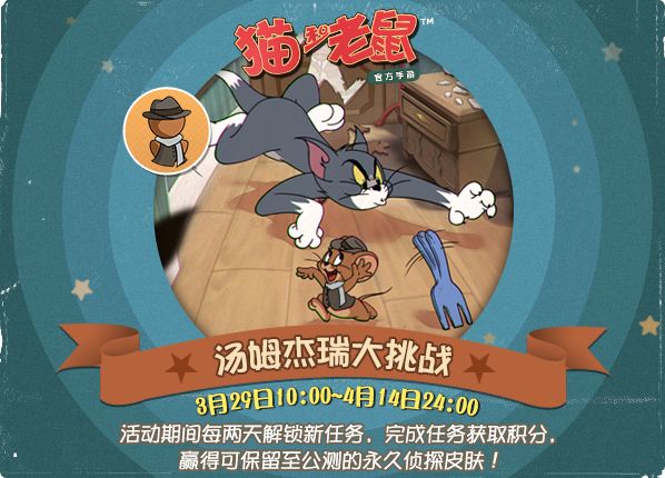 另外在本次测试期间,开发组还为大家准备了诚意满满的每日挑战任务哦。完成任务可以赢取丰厚好礼,每两天游戏内解锁新挑战任务,完成累积登录、匹配对战等任务即可获得相应积分。当累积到35积分时,你便能赢得珍贵的永久侦探杰瑞皮肤——上海滩探长!