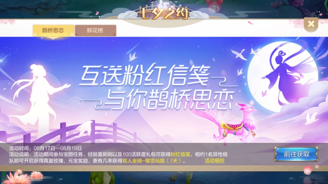 宝宝们只要与1名异性组队,就可使用粉红信笺啦!一人使用,双方都可获得奖励哦~快与心爱的ta一起在幻想大陆享受七夕吧~