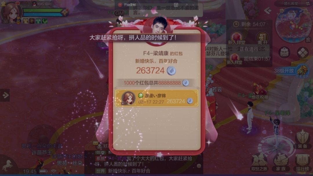 每队新人登场的时候还会有F4的红包祝福和流星祝福~又到了拼手速抢红包的时候了!婚礼结束后,入选集体婚礼的新人宝宝就可以拿到纪念版的结婚证啦!