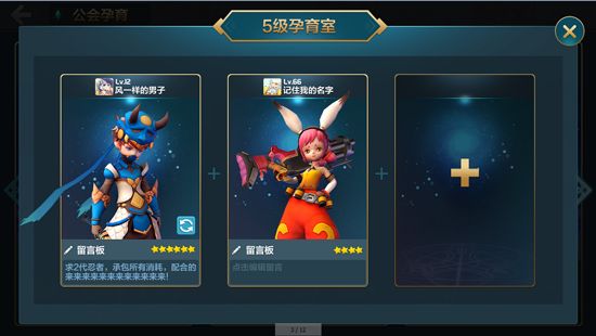 玩家可自主也可邀请公会好友一起把星灵放在孕育室中,一定要凑足3个星灵才可开启孕育计时!所以为了孕育出健康的星二代宝宝,与公会好友联络好感情很有必要!