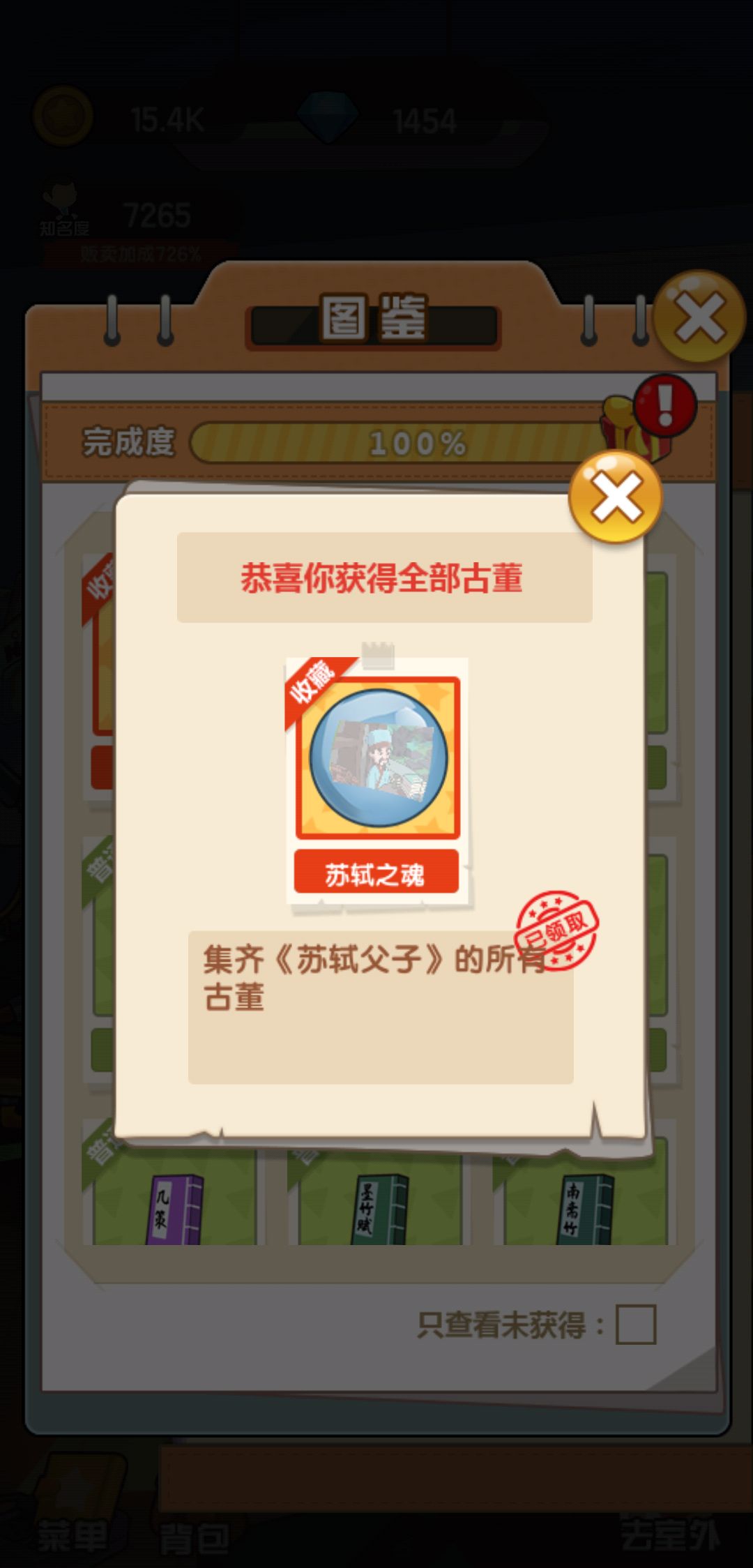 一直提示感叹号,在博物馆也能看到苏轼关古董实际都没有获得,而关卡显示获得100%