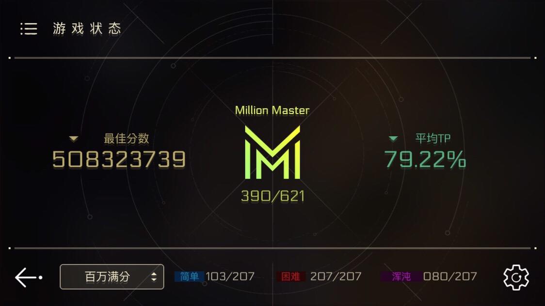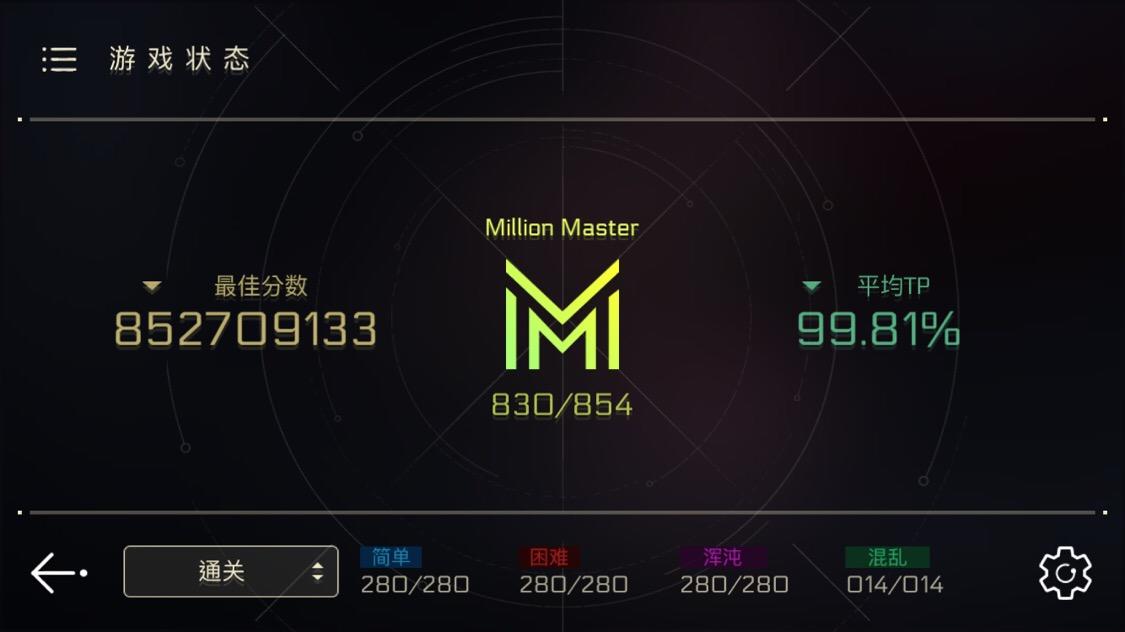 我本人是没有什么基础的,顶多以前玩过几天的钢琴块。刚刚开始玩的时候,困难混沌瞧都不瞧一眼,毕竟我也知道自己什么水平。😂第1个打的简单是泡芙的卡纳塔,初见非常惊喜的拿了个a,但tp很低。之后又多打了几次,不仅把它给m了,还顺带把其他的简单也m了。之后慢慢的,一些简单的和一些比较难的困难也都能m了,但我tp还是很低,一般都只有95~96左右,我当时也没发现这个问题,也就继续打。