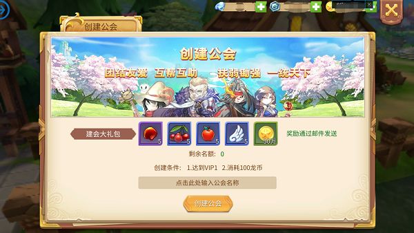 仅仅只需要等级达到125级,VIP1,消耗100龙币,就可以创建公会啦