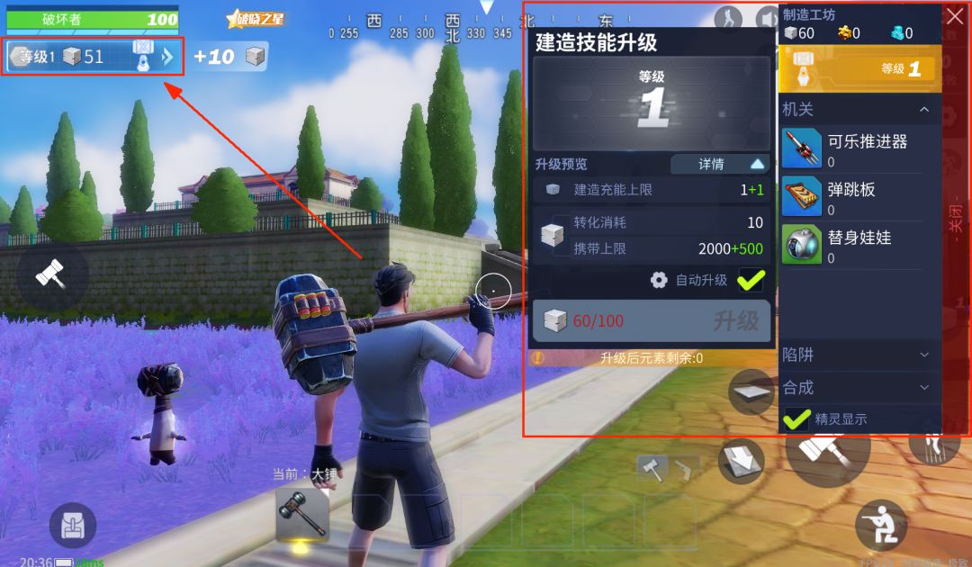 启明星之谷制造工坊,开工啦!点击状态栏下方的小锤锤按钮即可打开制造工坊界面。在这里各位探险家不仅可以升级建造板材的等级,同时还可以制作各类机关、陷阱以及合成特殊道具,同时还可以选择隐藏和显示自己身边的小锤锤。妈妈再也不用担心我捡不到想要的陷阱道具了!