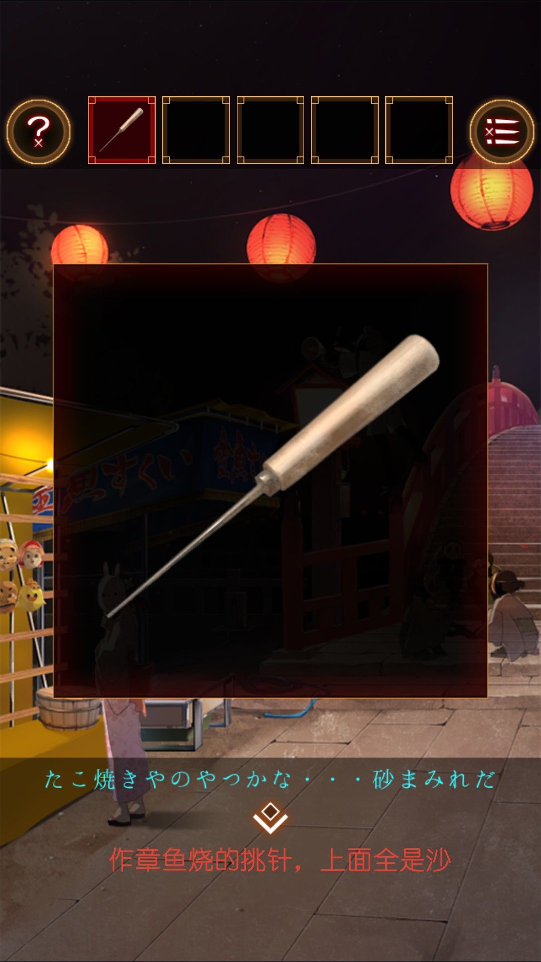 得到起子。去章鱼烧摊位,用起子点击烤板,打开烤板。打开后发现上面的文字是孩子们唱的童谣。根据童谣去的时候:よい,よい