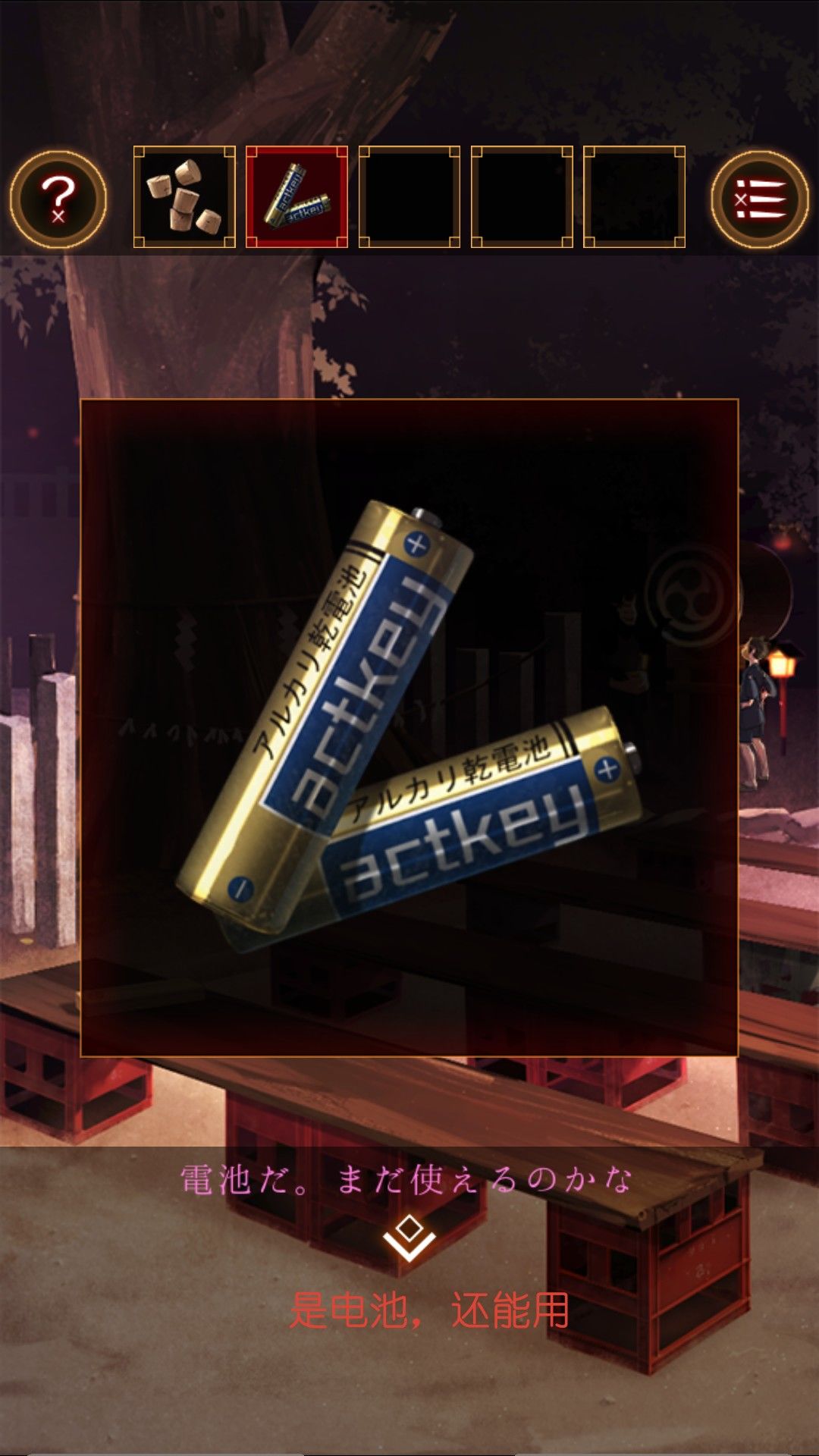 得到射击用的木塞。移动场景回到男孩在的地方,捡起桌上的电池。