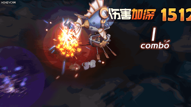 飞鱼战舰的普攻技能,不断的向指定目标投掷炸弹,对范围内敌人造成源源不断的伤害,并积攒能量值。天酱突然想到不停的给源兽丢炸弹,但是因为飞鱼战舰的速度过快,源兽又追不上,只能一直跟在后面生气的的场景,真的太可爱啦!(๑′ㅂ`๑)
