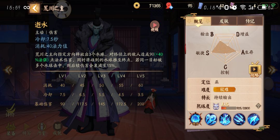 对线技巧:尽量靠被动平a穿插技能进行消耗,遇到线上难打式神,如:吸血姬。可以前期猥琐发育6级后看情况进行跑线,线上打不赢,但团战荒川有很大上限。