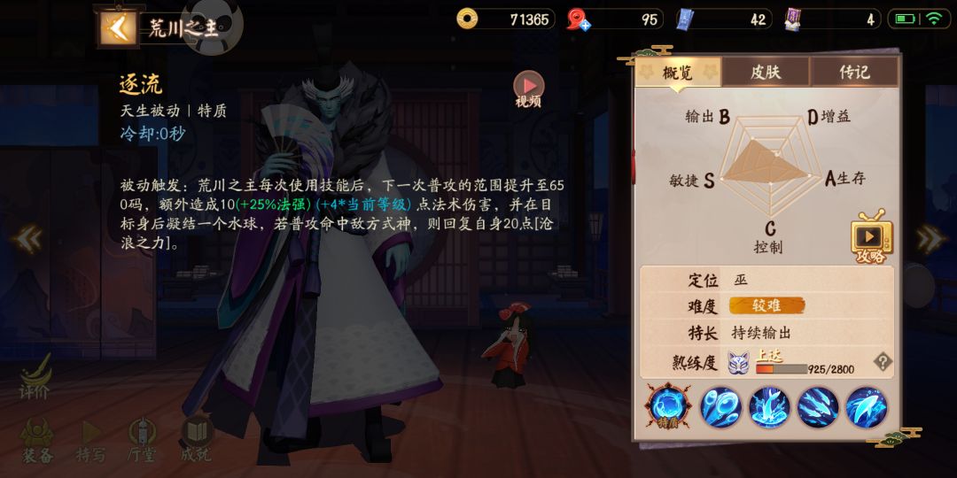 被动(逐流)简要:使用技能后可以强化普攻,普攻命中式神可以回复大招所需沧浪之力。