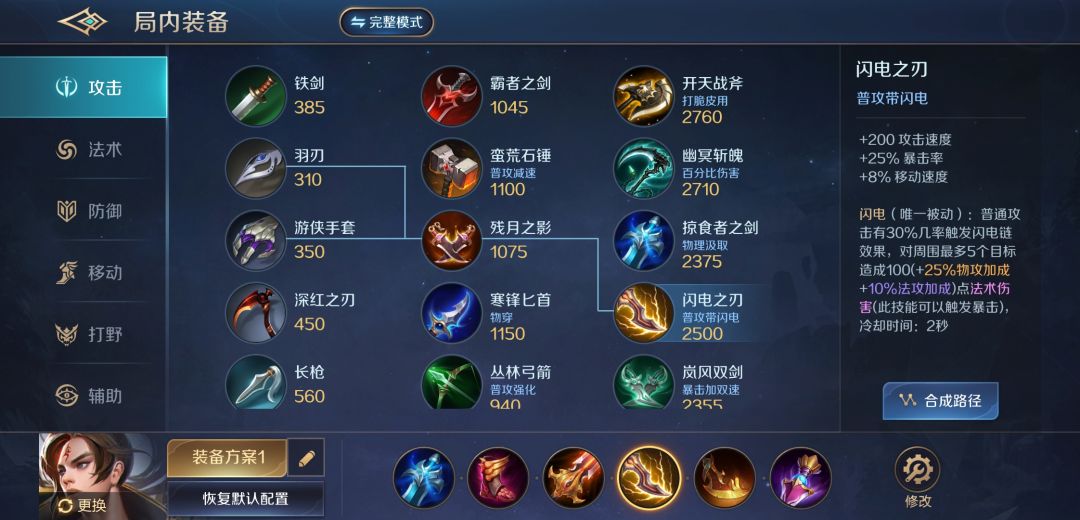 出装我建议出这套暴击装,现版本的花荣技能伤害已大不如前,但是走平A暴击路线还是有不错的表现。