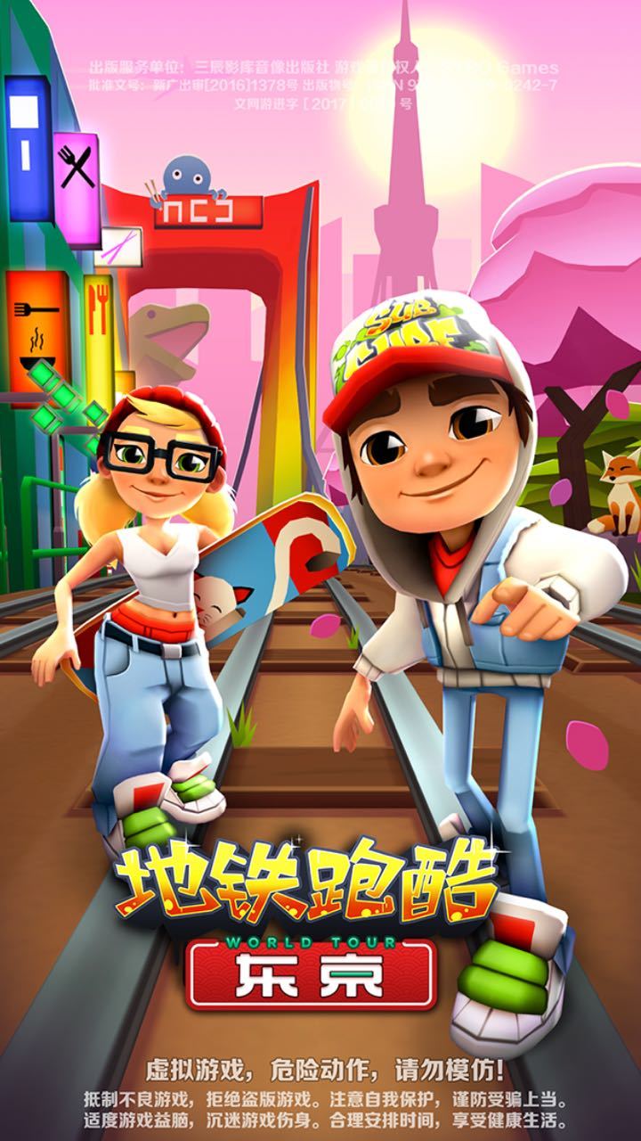 《地铁跑酷》是由kiloo出品,国内乐逗公司发行的一款极其经典的跑酷游戏,玩家要帮助熊孩子杰克和淘气的小伙伴在地铁轨道上奔跑,逃避地铁管理员的追捕,游戏在玩法在操控上非常简单,只需要上下左右划屏,就可以完成所有动作一路飞奔,而这款游戏中而只有一种挑战的玩法,就是尽量跑的远争取更高的分数。在奔跑的途中除了注意静止的火车和各种路障外,还要留意时刻会出现朝你奔驰而来的火车,有时一不小心判断失误,就会被撞倒人仰马翻。