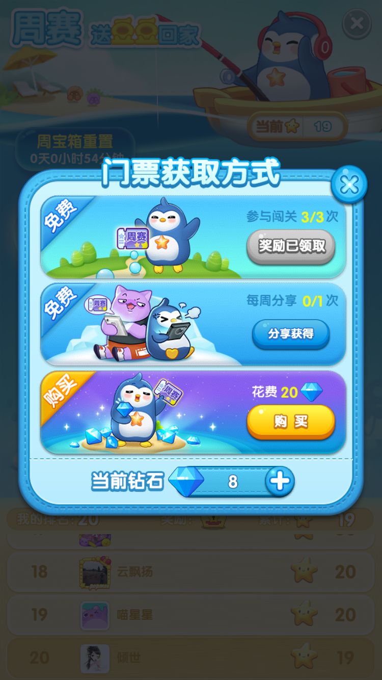 在《消除者联盟》中,为了拯救呆萌的小企鹅豆豆,玩家们勇敢的踏上了“送豆豆回家”的周赛冒险旅程。不过想要进入周赛可是有一定条件的,首先要注册游戏满5天并通过20关,其次需要有周赛门票才能体验这个玩法呢。那么,如何快速获取周赛门票呢?下面我们就一起来看看吧!