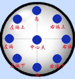 从这张图可看出白球上分布着9个点,分别是中心点,高杆,低杆,左塞,左高塞,左低塞,右塞,右高塞,右低塞。除了这个叫法外,还有顺逆塞与左右偏塞的叫法,为了让球友们较易理解,我们采用左高左低塞的叫法。以上的点数只是白球击打点中较具有代表性的点,实际上击球点每偏一个位置,白球的运动路线都会发现变化。那每个点位都要记吗?不是的,只要记住代表性的点对白球运动路线的影响,再加上练习与琢磨,就能做到举一反三,走位自如了。