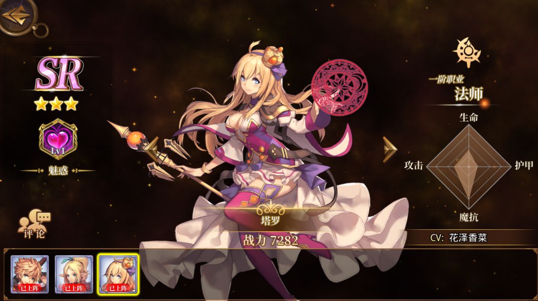 新手开局按照提示做完主线任务会有三个英雄。战士,射手,法师各一个。本人推荐前期主要升级战士,射手,法师跟上。战士前期和过渡期很好用,能攻能抗,只有抗住后排才好输出,至于射手和法师,本人感觉SR英雄各种类型都差不多,还是看个人爱好吧,在这里玩家可以自己进行一个对比,对比各英雄的天赋和你理想中的阵容符不符合。在这里我主要强调一定要以主培养SSR为主,如果你抽到的SSR英雄为战士或者骑士那就更好,如果抽到的是其他的,那么前排能抗的英雄的升级为第二选择,这样会很好的帮你渡过前期进入比较有玩头的中前期。
