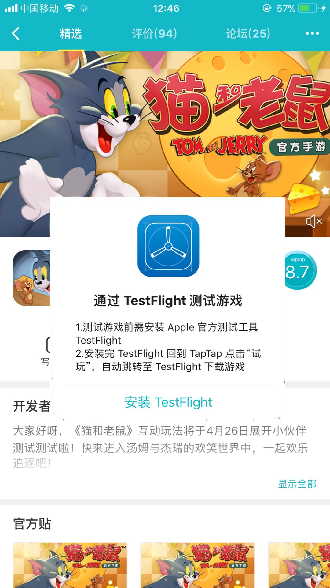 1、425日下午16:00,玩家可进入TapTap的猫和老鼠:欢乐互动(测试服)主页,点击下载即可下载游戏