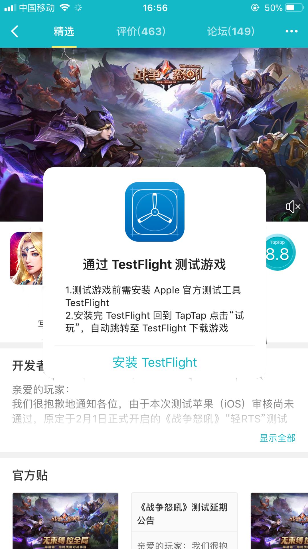 各位玩家好,本次《战争怒吼》荣耀测试即将在4月26日开始,iOS设备可通过苹果官方TestFlight测试渠道进行,体验名额有限。