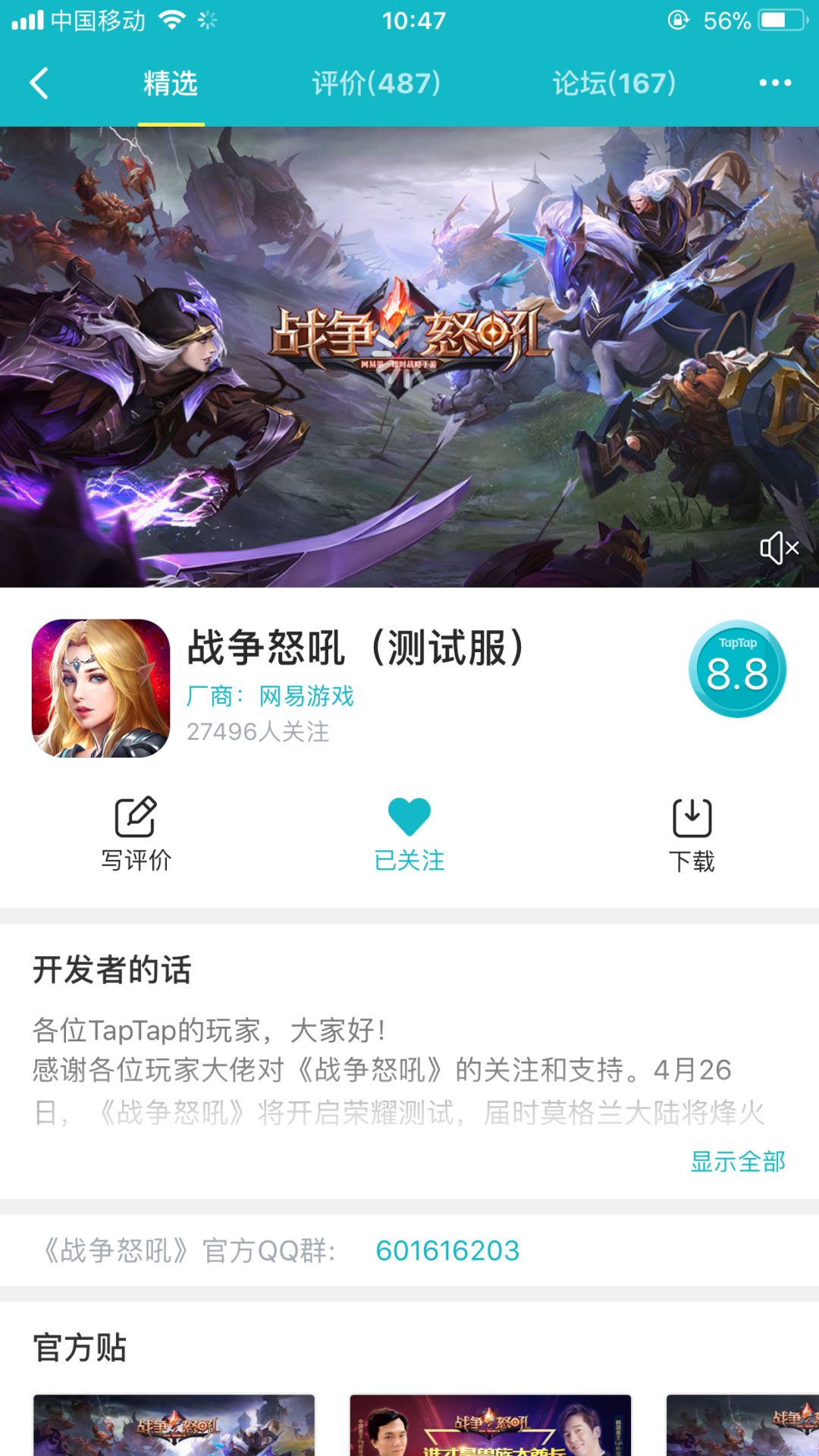 1、4月25日下午17:00,玩家可进入TapTap的《战争怒吼》(测试服)主页,点击下载即可下载游戏
