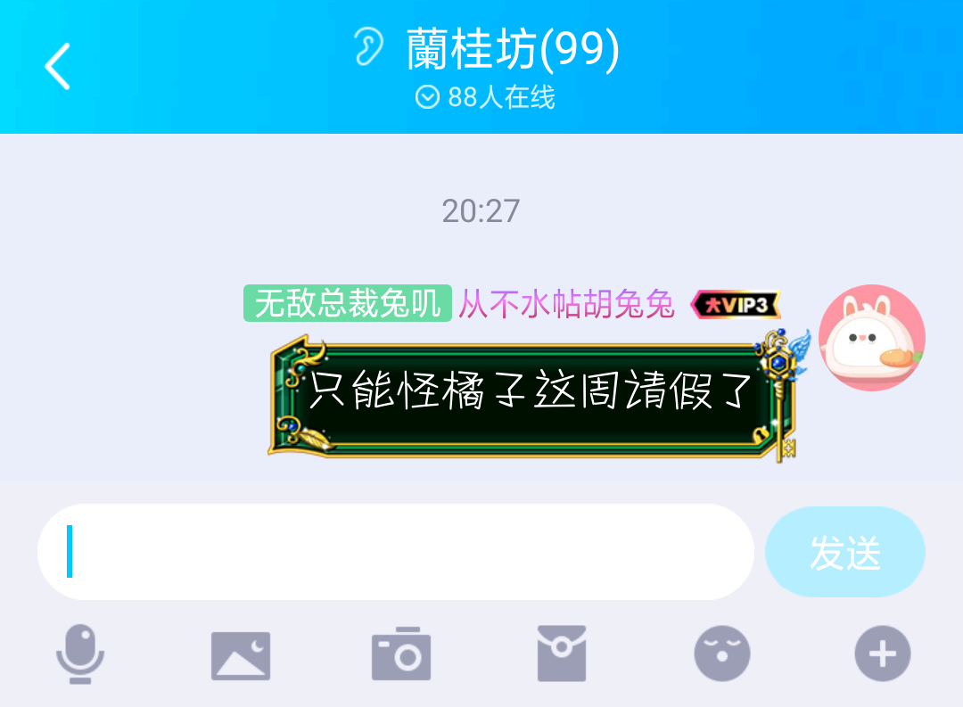 家族深渊核心人物,橘子大佬,有事不能来深渊,因此兔桂坊战力百不存一,因此家族决定,本周放假。