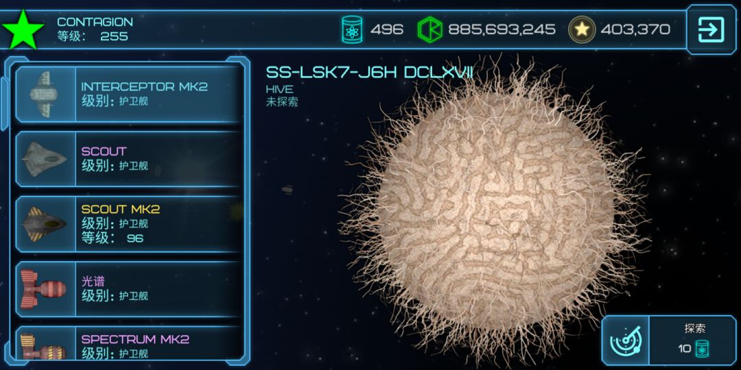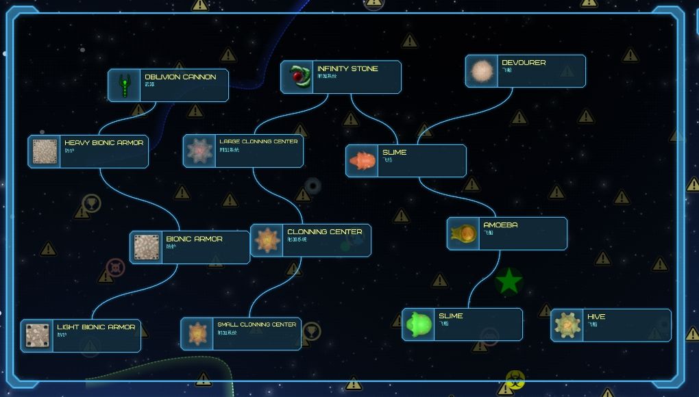 (HIVE飞船是我用数据库调出来的,所以和你们的科技树不一样)新势力飞船只有在200ly后才能在自由星系遇到,但是新势力刷新没有ly限制和文尼一样的,也就是说你新档开局就有可能遇见contagion,不过这时只能绕道走。先从科技树左边开始介绍吧。