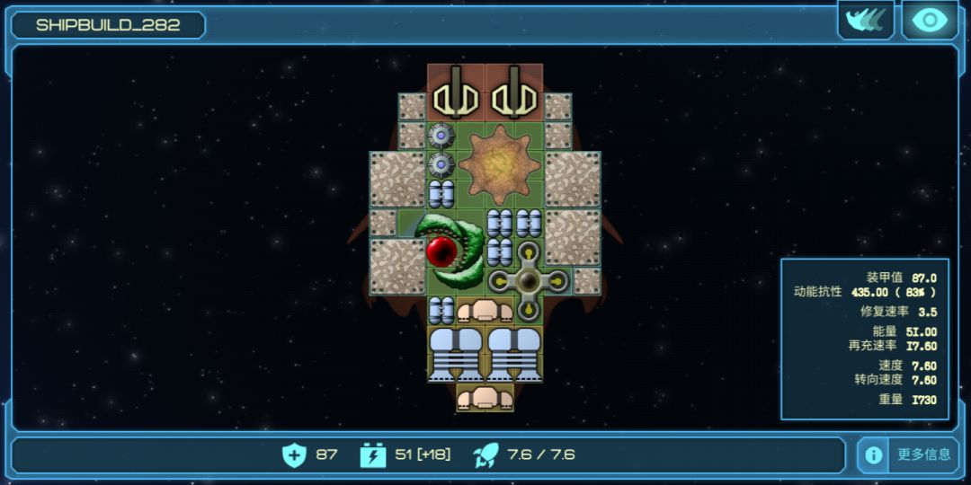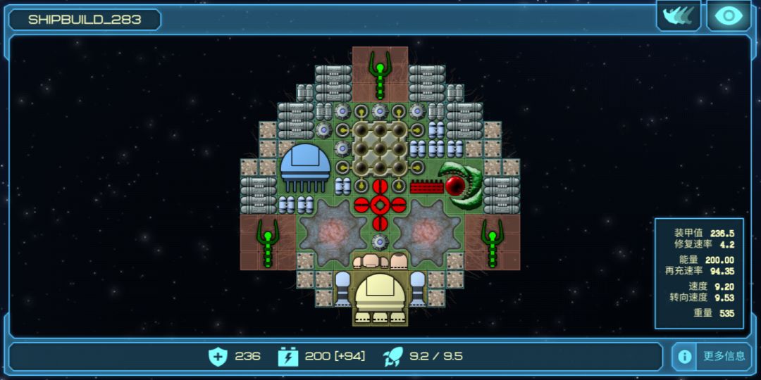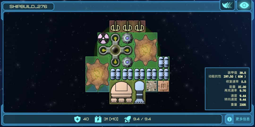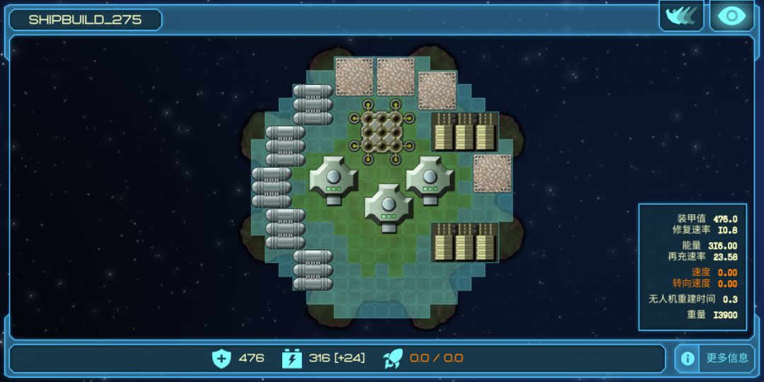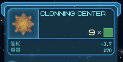 新组件clonning center,克隆中心。三个大小分别对应,护卫级,驱逐巡洋级,战舰级,没有旗舰级也没有无人机级。效果是克隆一个和飞船本体一模一样的无人机由ai控制,克隆组件只能用一次,不过能放置多个。由于克隆的飞船是无人机,所以能被无人机捕获器捕获,各位使用的时候要注意haha。因为克隆飞船是无人机所以部分组件也无法使用,比如无人机,套娃失败。ps:只有生物船可以使用。