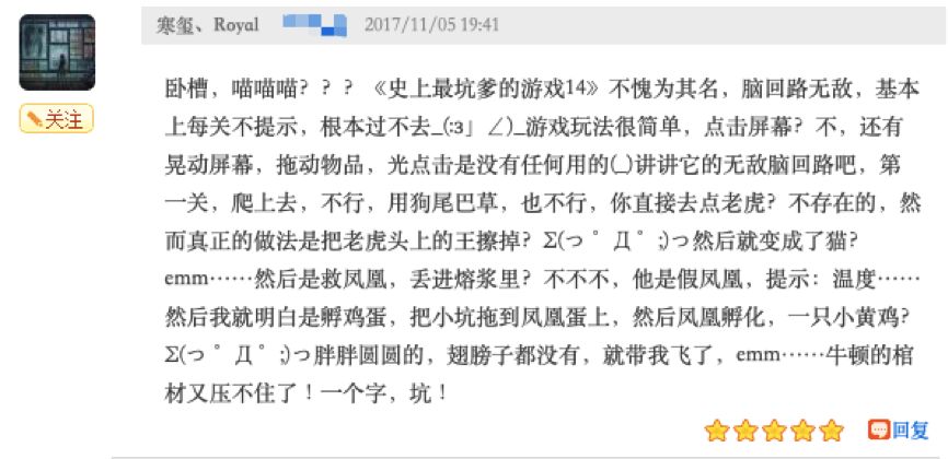 在此之前,史小坑借着部分粉丝评论,和大家分享《史上最坑爹的游戏14》是怎样带给玩家游戏乐趣的、也帮你挖掘更多小伙伴精彩的游戏体验 !